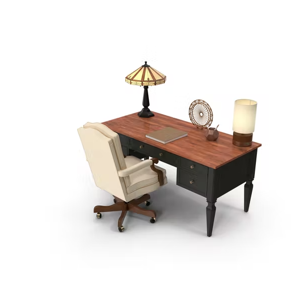 - Bagian alas yang luas untuk menyimpan komputer, laptop, atau barang lainnya
