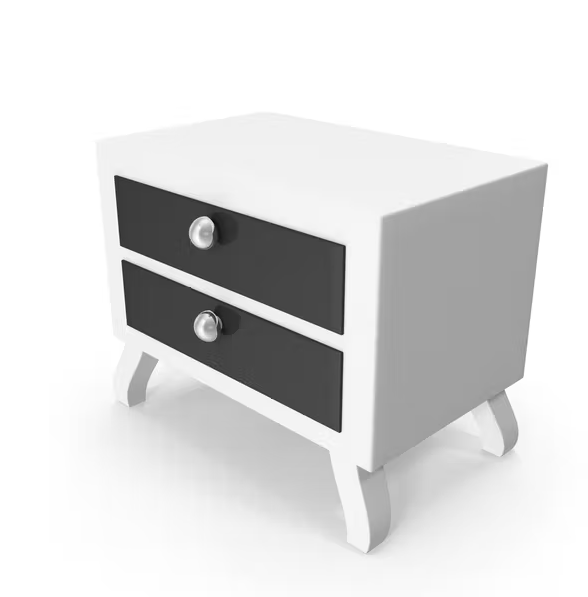 Untuk Anda yang menyukai ruang kamar dengan desain minimalis, nakas ini sangat cocok dimiliki. Nakas ini memiliki perpaduan warna hitam dan putih yang sempurna sehingga serasi dipadukan dengan warna interior desain putih. Anda bisa menempatkan jam weker di atas nakas ini. Selain itu juga nakas ini mudah untuk dibersihkan dan juga perawatannya.