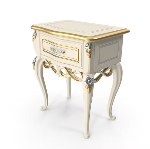 Tema baroque adalah tema interior yang desainnya terkesan mewah bahkan berlebihan. Gaya baroque ini berasal dari Eropa. Di sini kita bisa melihat detail nakas yang indah dan rumit hendak menggambarkan kemewahan konsep baroque. Perpaduan warna emas dan ivory membuat nakas ini semakin terlihat memukau. Anda bisa menempatkan nakas ini pada ruangan yang bernuanasa klasik.